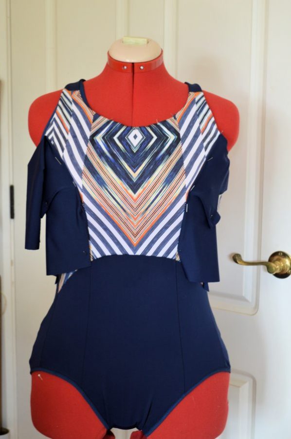 The printed sections weren’t quite lining up with my swimsuit patterns. Since I needed to reduce the length, I’d end up with white space at the sideseams on either the bust or the hips. I should have taken a bit more notice of the finished swimsuits as they use a band around the waist to break up the print. They are from different print panels but the idea could have worked.