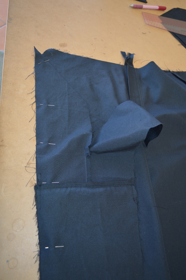 After that, the rest of the side seam could be sewn up to the waist. Aided by a lot of notches, it all lined up.
