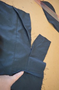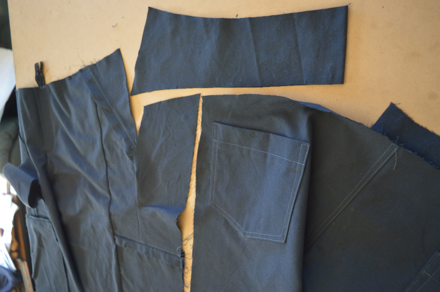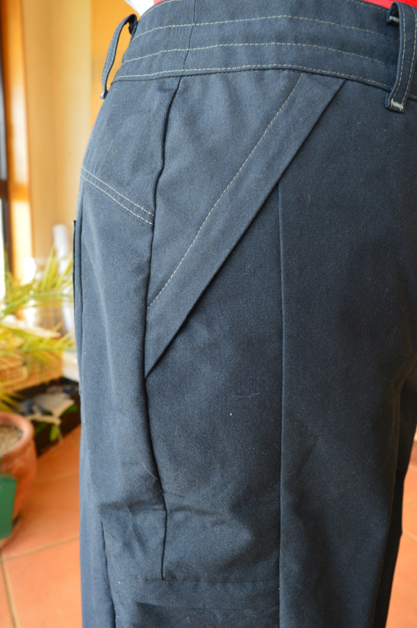 On the back, the patch pockets were sewn on. Then the crotch seam, the side panel seam and finally the yoke.