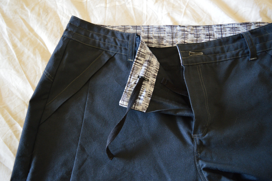 I graded up from my pant sloper so that I would be able to wear a thermal layer under the pants for winter hiking or XC skiing. The waistband was made deeper to add in the draw string.