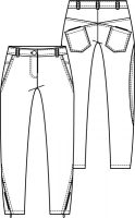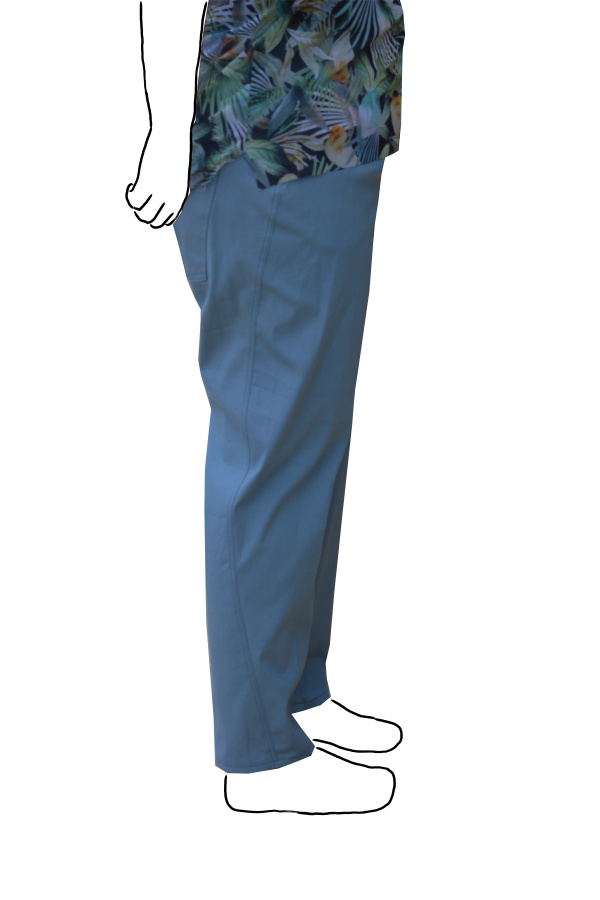 The catch is that I generally need to take 15-18cm length out of KM pants, so the curved side seam added some difficulties.  The front and back pieces butt together from the low hip down to the ankle.  So I adjusted shortened the crotch height and length at the mid thigh and calf.  Then butted the pieces together to redraw the arc of the side seam.  That kind of worked well