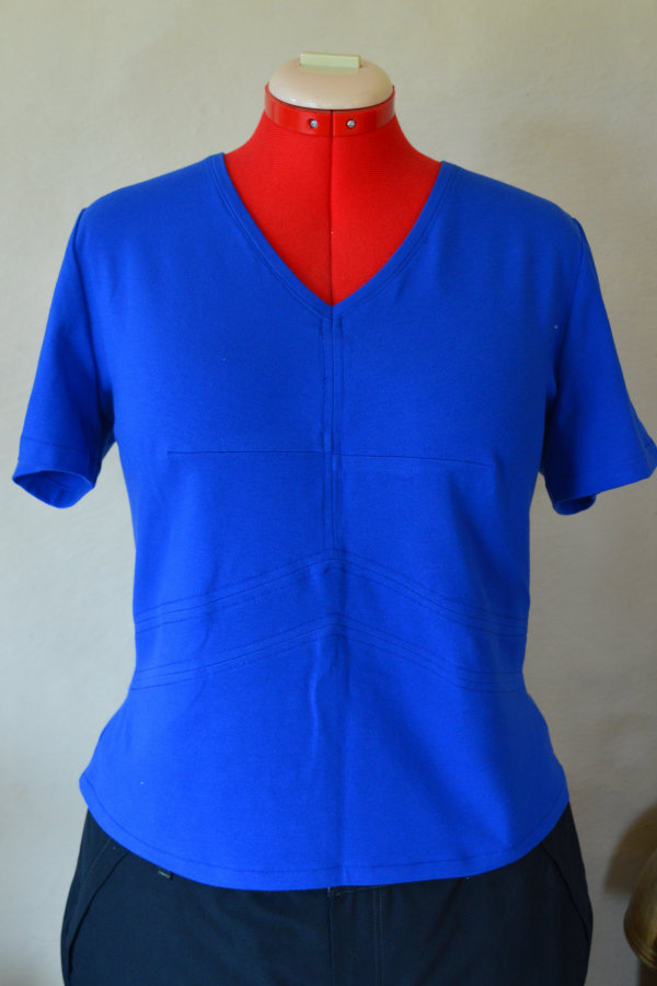 I made this entirely on the sewing machine.  The fabric is a cotton lycra.  To avoid bulk on the seams, I pressed them open and used the ‘lightning’ stitch to top-stitch it.  I’ve also shortened the sleeves and given them a bit more width.