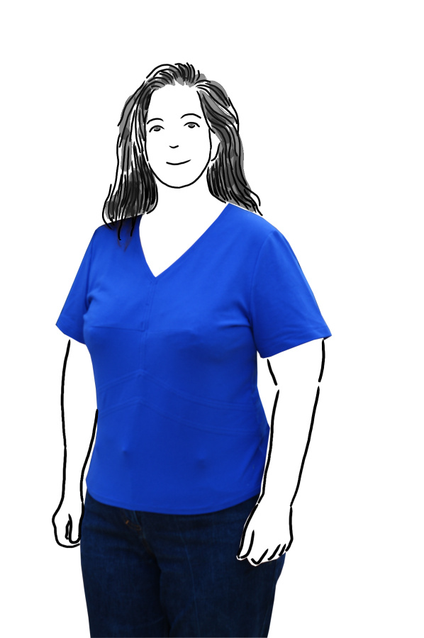 This top is so cute!  There is other versions, both dresses with different skirt styles.  I made a muslin for this one and tweaked the fit over the bust.  It is very easy to do with this style.  The top is quite short.  Even on a vertically challenge person like myself, I had to add 5cm to length.