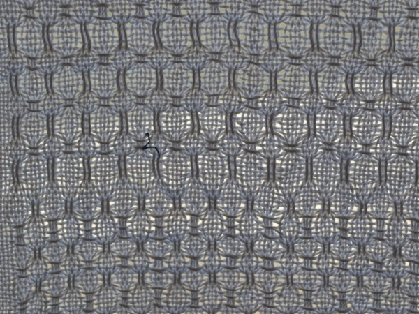The other weave I was interested in was the lattice weave. It was very hard to see the pattern on the loom and you can just pick the diagonal ridges looking across the cloth. I had a hunch that there was a problem with the treadling, and sure enough, I ‘invented’ a weave which is part lattice and part cable 🙂 I think the last block in the treadling is an end block rather than part of the repeat. But I’ll plug it into the weaving program to make sure I get it right.