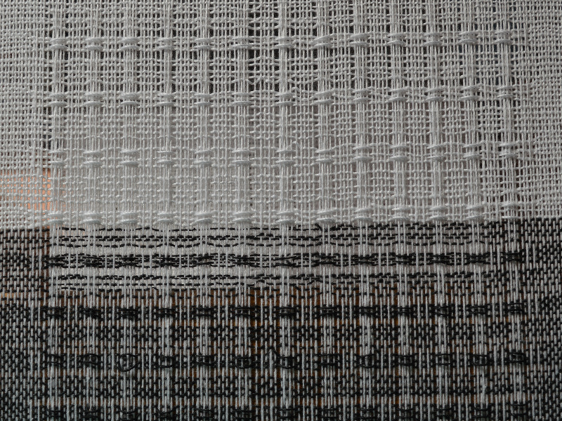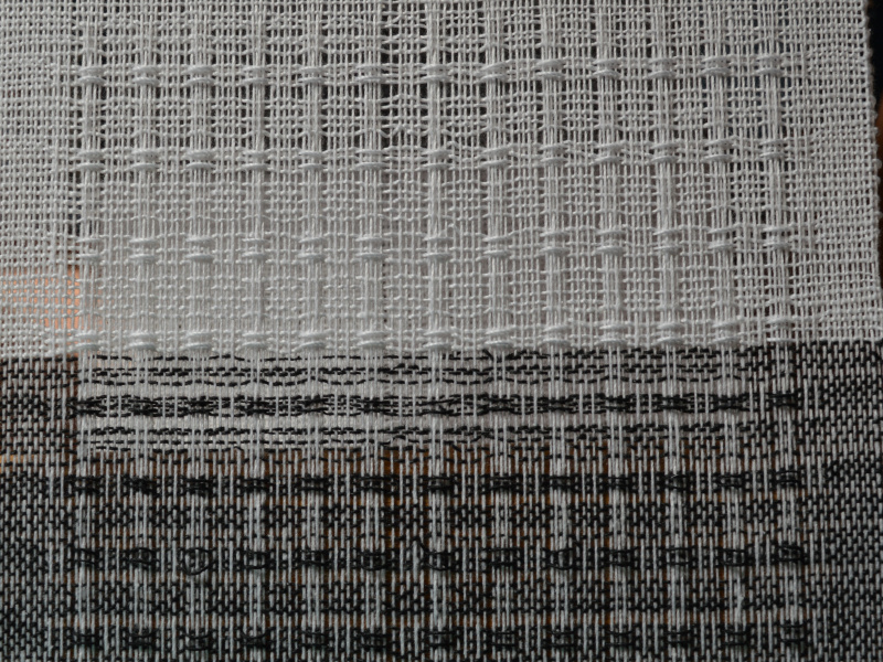 For my top, my first idea was to have a plain or textured weave for the main body, and then a second more open weave on the yoke. But first, I was a good girl, and have done a sampler of different huck weaves to see how they look, rather than diving straight in.