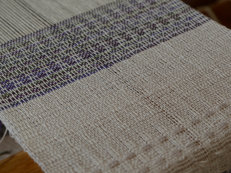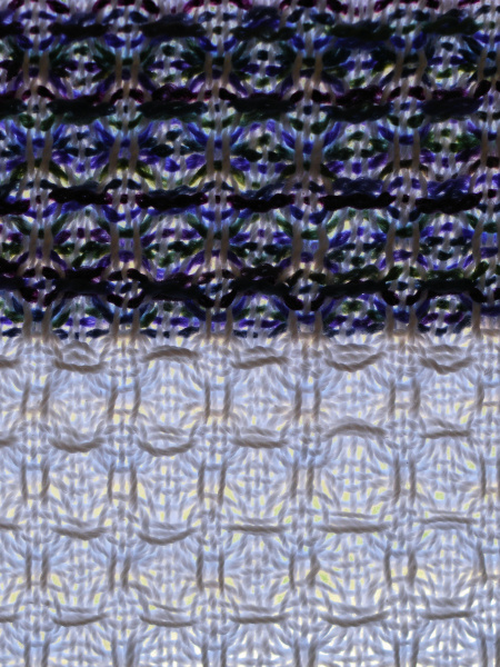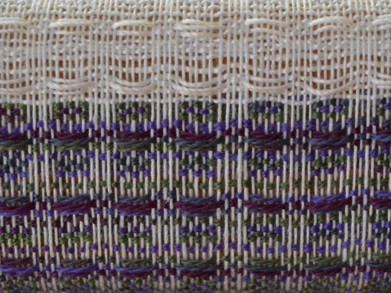 This intrigues me, the way it changes from loom to final piece and I really like your ‘invented’ pattern.