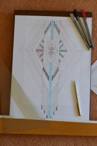 I fished out my drafting board, T-square and set squares.  A bit of reverse engineering…  and came up with a rough draft that would fit on A3 paper.
