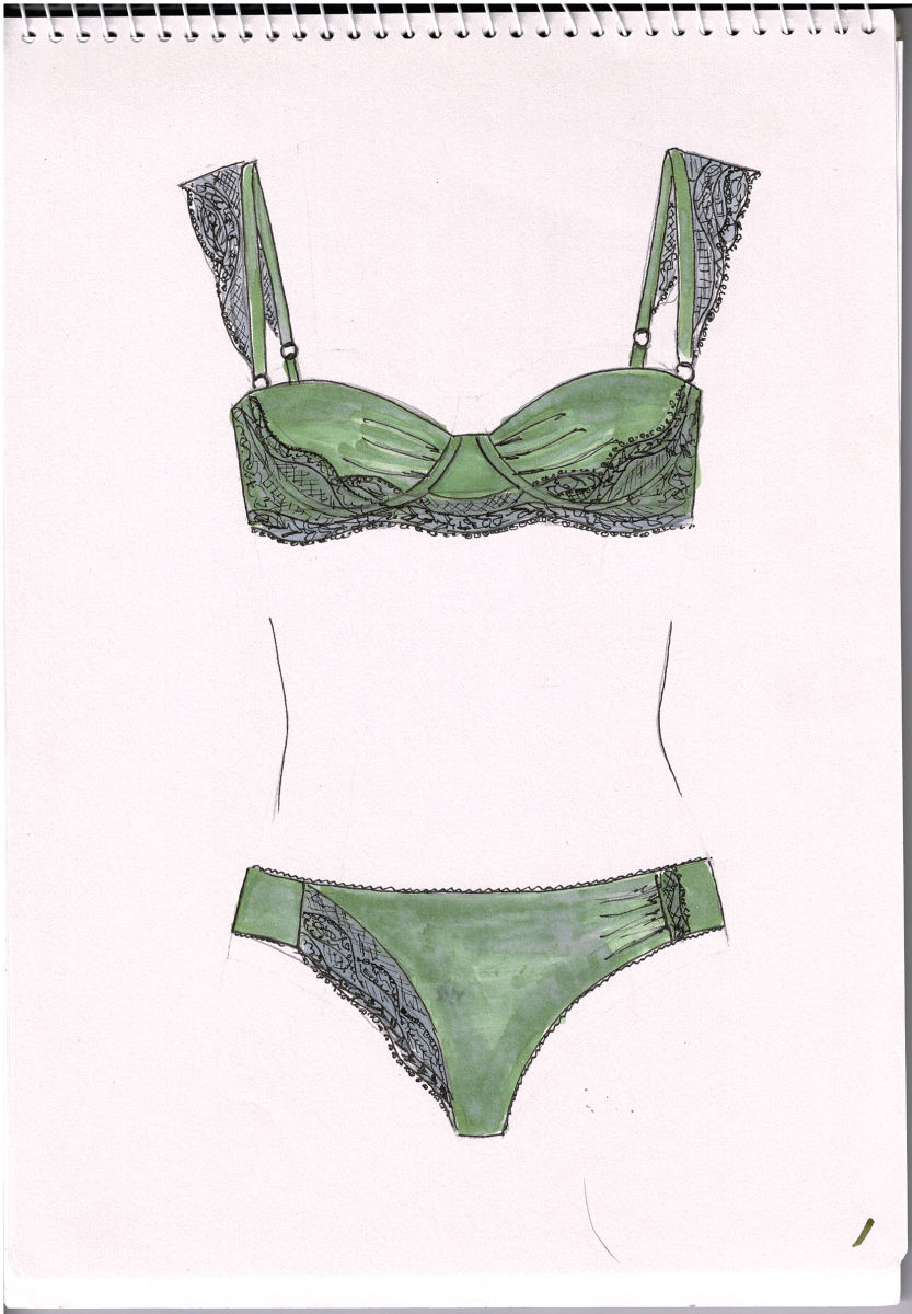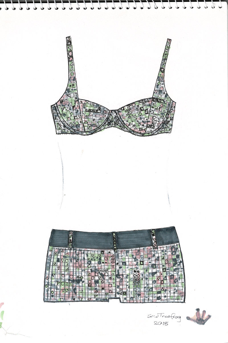 The lycra is reversible with a lighter shade on the reverse, which unfortunately didn’t photograph well. The pattern for the bra will be self-drafted and using Merckwaerdigh SV32 for the bottoms to echo the tucks and lace accents