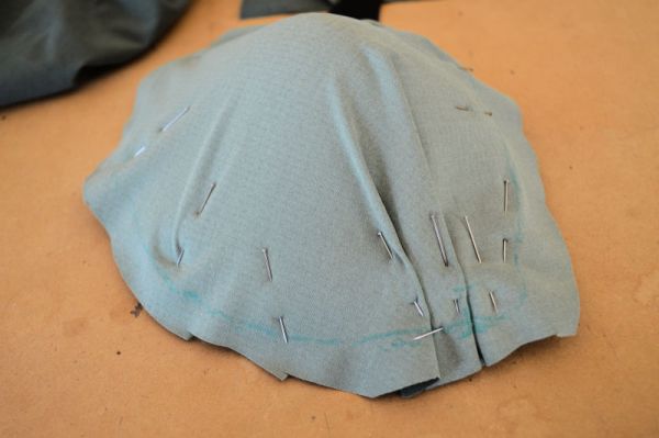 The cups were made from foam using the adjusted pattern pieces. I’ve sewn on a triple-folded piece of tricot over the seam line. This is step that is usually included in the Merckwaerdigh instructions, that I didn’t see done in Beverly Johnson’s Craftsy class. It is a nice touch to finish the inside seam, but also helps to stiffen the seam. I wish I had taken before and after shots, because before adding the tricot, the cup seam wanted to fold like a clamshell. But afterward, it has a nice smooth shape.