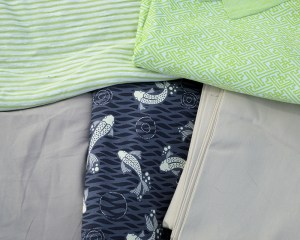 This wardrobe is an outdoors/casual wardrobe. It’s not completely mix/match but divided into groups of 5 with two tops and 3 bottoms. The groups make the planning a little easier for me. Within the group, they all work together and have a similar theme. Many will also work with the other groups but don’t necessarily need to.