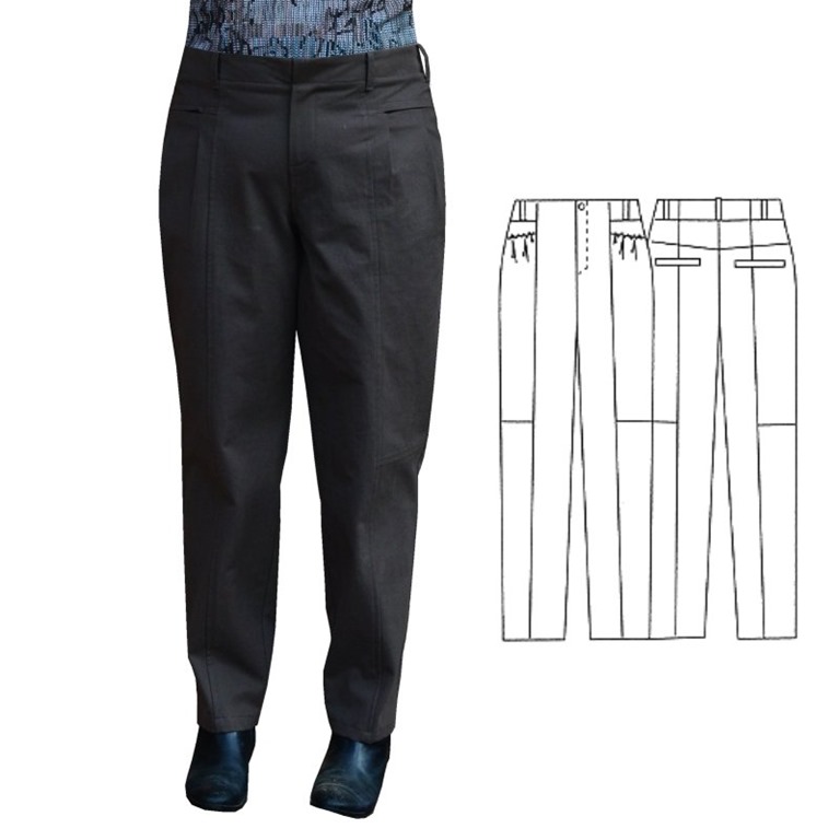 I made these pants in a very heavy, tightly woven cotton twill. The fabric is still a little stiff but should soften (I hope). The style lines of this pattern a great – a bit more detailed than most pant patterns. The princess seams make fitting much easier too.